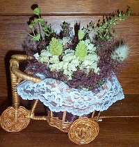 これは、台はかまぼこ板です(笑) 英字新聞を貼って、周りにローリエを・・・。 念願のトピアリーに着手・・・が、しかし! 読みを誤って、ドライフラワーの数が 足りずに反面は・・・幻の1作です(T_T) もう、この手のは、入ってこないとか(号泣)