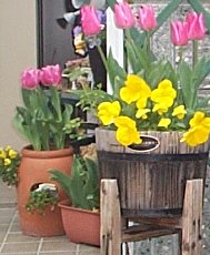 チューリップとパンジーの 寄せ植えは、よくします。 あと、ビオラや忘れな草も・・・