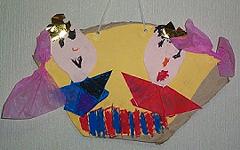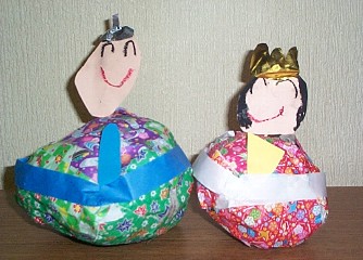 2002年3月のハッピ〜♪気分 3月3日は桃の節句♪ 我家は男の子ばかりなので縁がないのだけど だからこそ、お雛様に触れたいと思うσ(^_^)です。 ちびでびるの幼稚園ではこの時期、いつもお雛様を手作りします。 今年も作ったそうなのですが、1週間も幼稚園を休んだので まだ出来あがっていず間に合いませんでした。 持ちかえり次第、Up・・・するかどうかはわかりませんが 去年の子供達の作品&これまた去年のσ(^_^)の作品?を・・・(笑)