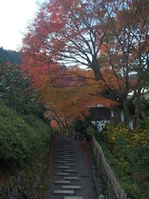 お寺らしい風情のある坂道。 善峰寺はかなり高低差のあるお寺です。 紅葉の他にも、桜や紫陽花が 綺麗なことでも有名です。 特に、紫陽花は格別 ・・・と聞いています(^^ゞ |