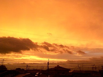 台風の雲の端の不思議な夕焼けの空に・・・Over