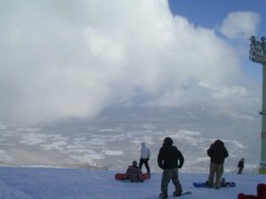 北信州木島平スキー場 ようやくダンナの背中のオデキも無事抜糸を終え、1ヶ月半振りのスキーへ! 近所のコンビニで朝食(サンドイッチ&おにぎり)を買って、出発したのが夜中の1時前。 到着は、6時前〜え?!最速、5時間で到着しました? 子供達が休憩でトイレにも起きず、短い時間で出発したからだな、きっと・・・。 でも、高速は、ここ最近ではないぐらいに車の量、特にスキーバスが多かった! 年末のドカ雪で、バス会社もたくさんツアーを打ち出したんだろうねぇ〜。 到着して車中で仮眠を・・・と、うとうとしだした時に、長男がトイレ〜と起きて来た(- -; それからは、あまり寝れず睡眠不足のまま活動開始。 何かの大会があり、メインゲレンデの端っこにネットが張られ、参加している人の他に レーサーがたくさん滑っていて、な〜んか滑りにくい? おまけに、ブーツのバックルを締め過ぎて・・・っていうか、下に履いてたタイツが分厚すぎて(^^;A 足がしびれてきた。。。なんか不調なので、ダウンヒルコースを1度滑った後 もう一回というのを、ダンナと長男だけに滑ってもらい(次男はガリガリ過ぎてイヤ〜!とリタイヤ(笑) その間に、靴下を脱ぐと、それからは快適に滑ることが出来ました。 でも、やっぱりあまり寝てないのが響いて、2時にはもう宿に行く?と引き上げました(^^;A 宿はいつものペンション。ダンナは運転の疲れで寝てしまったので 空いてるうちにお風呂に・・・。 そうこうしているうちに、他の宿泊客が到着〜なんか、今日は多いぞ? と思っていると、埼玉のサッカークラブのお友達同士で、マイクロバスでやってきていました。 夕食時、あんまり人数が多いので、お手伝いのアルバイトを頼んだんだ〜 と思っていたのですが、実はそのサッカークラブのお母さんや高3の娘さんでした(^^;A 夕食後、例のごとく?社交家の次男がダイニングに降りて、その中のおとうさん?とお友達になっていました。 実はその方、今は埼玉にお住まいですが、実家が私達のご近所さんで、 車のナンバープレートを見て、次男に話しかけてきたそうです。 すっかり地元の話に花が咲き、ご持参のビールやらおつまみをご馳走になりました(^^ゞ 翌日は、朝食後ゆっくりペンションを後にしたので、滑り出したのは9時半頃? 前日のネットはすっかりなくなり、広々としたメインゲレンデで、快適なカービングを楽しみました。 今回、お正月明けのニセコの急斜面やぶかぶかの雪で鍛えられたのか? 次男がかなり上達していました。2日目には、ダンナにもちゃんとついて滑れるし ウェーブをおもしろがって、何度もチャレンジし、ジャンプ(ほんの少しだけね) をしたり、また、長男と二人でアイスバーンの沢を降りて、ウェーブに行ったり そういうとこ、さすが男の子だな〜と感心したりして・・・(*^^*) 帰りのことも考えて、今回は13時までのハッピータイム券(半日券〜\2500x3=\7500)を購入。 第3日曜は、スキーこどもの日で次男のリフト券は無料♪ ちなみに、土曜は1日券だけど、ファミリーチケット(大人2人+子供1人で\7000)+長男の分の\3500 だから、かなりお安く滑れたかな? 帰りは、SAで昼食を食べたので5時間半で帰り着きました。 次回、3/4〜5に予定しているのだけど、木島平がいいかな〜?と思っていたのに なんだか大きな大会があるような・・・(- -; でもまぁ、混んでたら隣の牧の入や池の平へ逃げてもいいし、決めてしまおうかなぁ。。。? 悩むところです〜〜! 写真は、スカイコースの滑り出しのところから見たふもとと 第2ペア乗場付近から見た妙高山です。 ホント空いてます。。。 白い山が妙高山です。 |