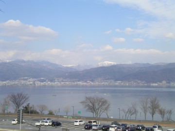 諏訪湖SA(下り)、上下線とも諏訪湖が見え、SAに温泉があります。 |