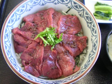 諏訪湖SA名物、さくら丼!はなまるマーケットで、主婦が選ぶ 高速道路ご当地グルメTOP3で1位だそうです。お醤油としその葉、 海苔とたまねぎのスライスが味を引き立てていました。 |